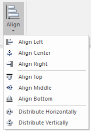 The eight "alignment" commands on the Home toolbar allow you to position objects relative to each other.