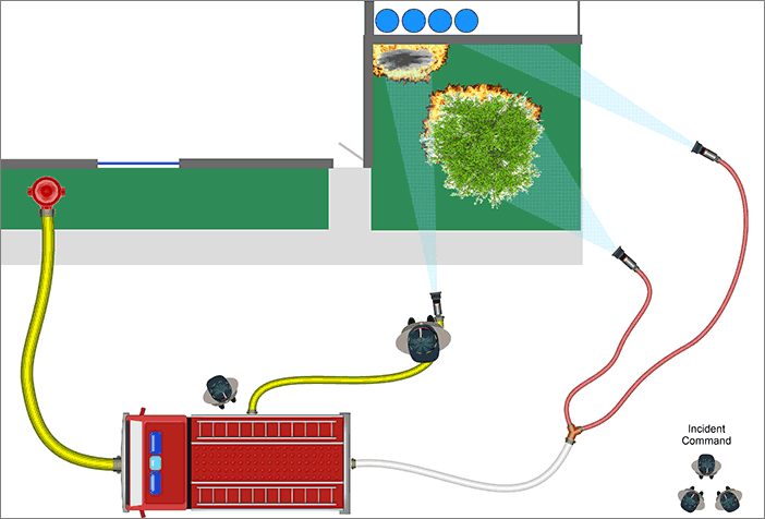 In addition to rope rigging, you can create top-view firefighting illustrations with vRigger. Working with the firefighting equipment in vRigger is very similar to working with rigging gear.