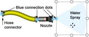 To connect the water spray to other gear, drag it with your mouse, align the blue connection dots, and drop it.