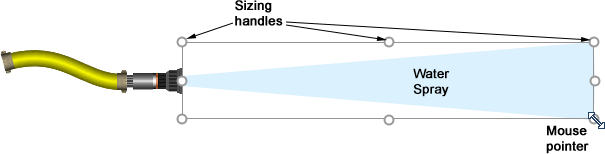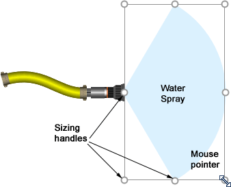 To change the size of the water spray, click on the water spray to select it and then drag any of the sizing handles.