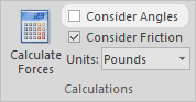 When calculating forces, vRigger can include, or ignore, the horizontal forces that are generated by rope angles. You enable the calculation of these "horizontal" forces by selecting the Consider Angles checkbox in the Calculations group on the Forces toolbar.