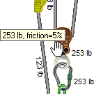 Friction calculations can be confusing. For example, if the pulleys in a typical 3-to-1 haul system each have 10% friction, then the mechanical advantage is closer to 2.7-to-1 rather than 3-to-1. When in doubt, leave friction disabled.