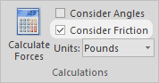 You can control whether vRigger considers friction by selecting the Consider Friction checkbox in the Calculations group on the Forces toolbar. (The friction in "descending devices" is always considered.)
