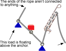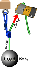 The red Display Arrow shows whether the rope is being pulled or released. For example, in this next system the hand is pulling, rather than releasing, the rope. So the hand is holding the entire load.
