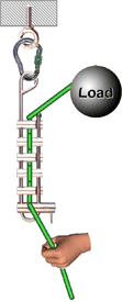 The system shown below is "unbalanced," because nothing is preventing the load from falling. You need to either connect the end of the rope to something that will pull on the rope (e.g., a hand, winch, rescuer, etc), connect it to an anchor, or set the friction in the brake bar rack to 100%