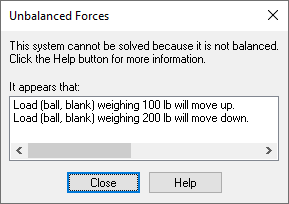 The cause of an unbalanced system can be as simple as having an unanchored load located next to a valid system. In this next system, nothing is supporting the load which will prevent vRigger from calculating forces.