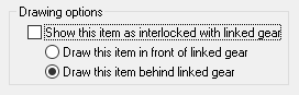 The Show item as interlocked with linked gear option in the Gear Builder's Connections page controls whether gear that is connected should appear interlocked. This page provides details on that option. However, in almost all cases you should simply leave the option selected.