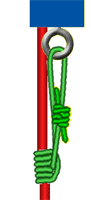 The gear connection point for vRigger's Prusiks is at the end of the loop. To connect a Prusik to another item, drag the Prusik until the blue connection dots overlap and then drop it.