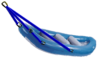 Systems containing rafts usually look best if you first resize and rotate the carabiners. In the following illustration, all of the carabiners have been resized so they are smaller. The carabiners in the "distance" were sized even smaller to give the appearance of perspective, and everything (i.e., carabiners, raft, and water knot) was rotated.