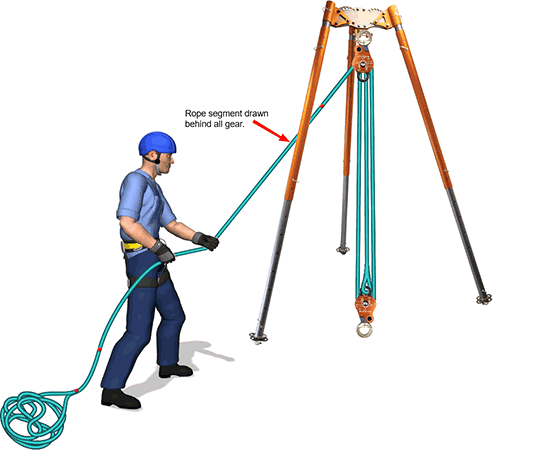 Next, click your right mouse button on the section of rope between the man and the slack point and choose Arrange Gear > Arrange Rope Segments > Draw Behind All Gear (learn more about the rope drawing order commands).