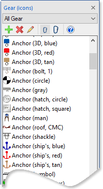 Gear panes can be docked or floated within the workspace. To add gear to the workspace, drag an item from a gear pane and drop it on the workspace. Learn more about the gear panes.