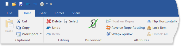 vRigger displays a toolbar at the top of your screen that is very similar to the "tabbed" toolbar in Microsoft Office. This style of toolbar makes it easier to quickly find the commands that you need. The commands are organized into logical groups on individual toolbars. Each toolbar relates to a type of activity, such as calculating forces or changing the view. Learn more about the toolbar.
