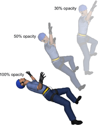 The Opacity field controls the item's transparency. A value of 100% is fully opaque while a value of 20% is very transparent. By default, the Opacity property is only available for a few items (i.e., the shapes, smoke and flames, water spray, and inserted pictures). However, when the Always display the Opacity property checkbox is selected on the General page of the Options dialog, the Opacity property is available for all items.