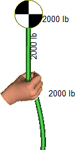 The Maximum Force setting controls the maximum force that the item can pull or release during force calculations. In most systems, the puller's maximum is never reached. However, in the following example, the hand's force must be limited or it will pull until the rope breaks. In this example, the hand's maximum force was set to 2,000 lb.