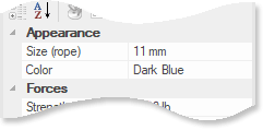 If you select multiple items which include ropes, webbing, or hoses, a percent sign will be shown after the word Size in the properties pane to remind you that you are entering a percentage.