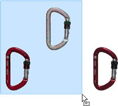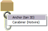 Commands are then performed on the selected item. For example, if you select a carabiner and then choose Delete from a menu (or press the Del key), the selected carabiner will be deleted.