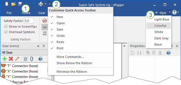 vRigger features a Ribbon-style toolbar that is similar to the toolbars found in Microsoft Office©. This type of toolbar groups common tasks, such as the force calculation tasks shown here, which makes them easier to locate.
